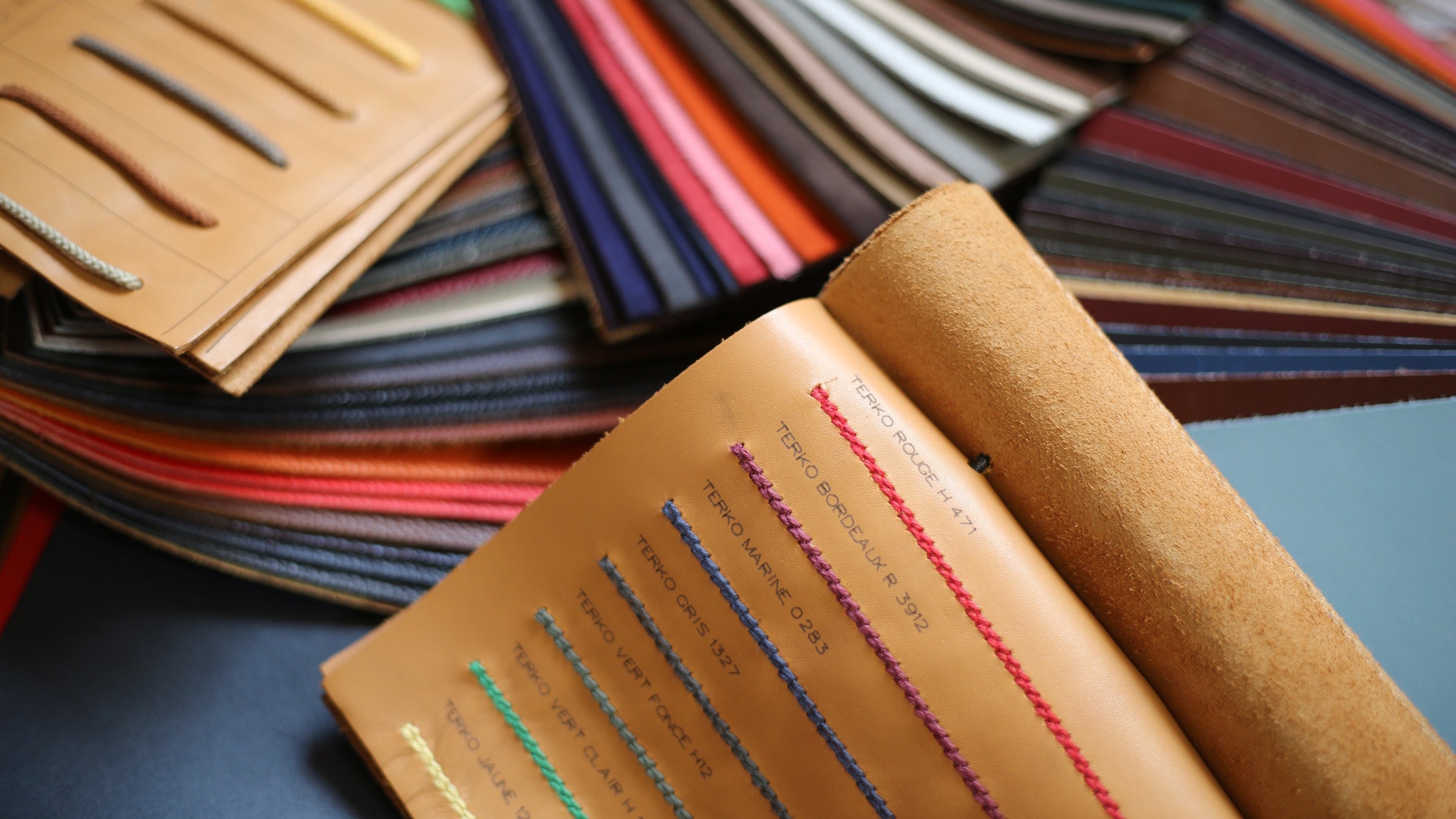 エキゾチックレザーまで、約100種類ものマテリアルが揃います。