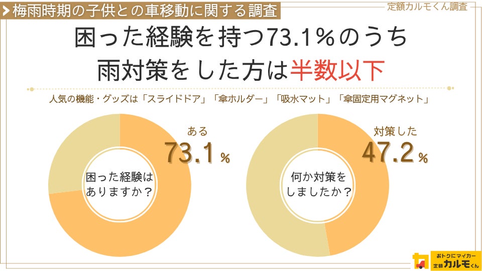 【梅雨時期の子供との車移動に関する調査】7割以上が困った経験を持つが、対策したのは半数以下