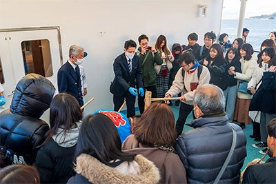 「明石海峡大橋」と「初日の出」の絶景を楽しめる、2025年元旦クルーズの開催が決定!船内では、お正月の餅つき大会、甘酒の販売など、お正月気分を存分にお楽しみいただける企画が盛りだくさん。