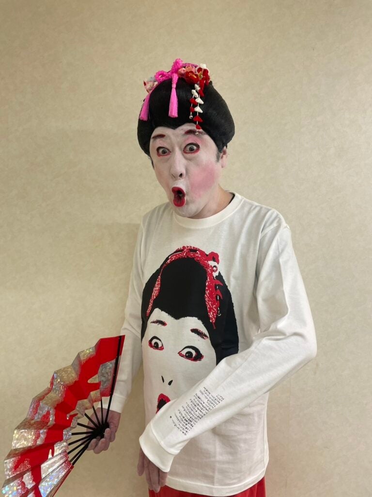 顔面白塗りの狂気!コウメ太夫の驚きの白さをTシャツで完全再現!超チクショー級のインパクトで贈る顔面ロングスリーブTシャツが登場!フロントにはチクショーの絶叫が聴こえる顔面プリントに、左袖にはコウメ太夫おなじみのネタのカンペを再現!これさえ着れば、いつでもコウメ日記が再現出来る!?