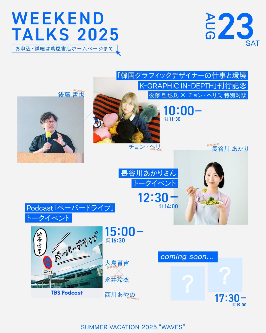 今回の特別企画は、夏の全館フェア”SUMMER VACATION”として「WEEKEND TALKS vol.1」を開催! イベントに合わせて、登壇する皆様からコメントもお寄せいただきました!