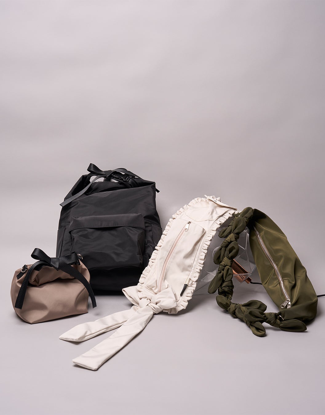 たすき掛けのデザインが遊び心をくすぐるユニークなバッグやハンドル部分が結び目のようなデザインのショルダーバッグ・テープのリボンが特徴的なロールリボンバッグなど好みのリボンディテールバッグに出会える豊富なバリエーション展開です。