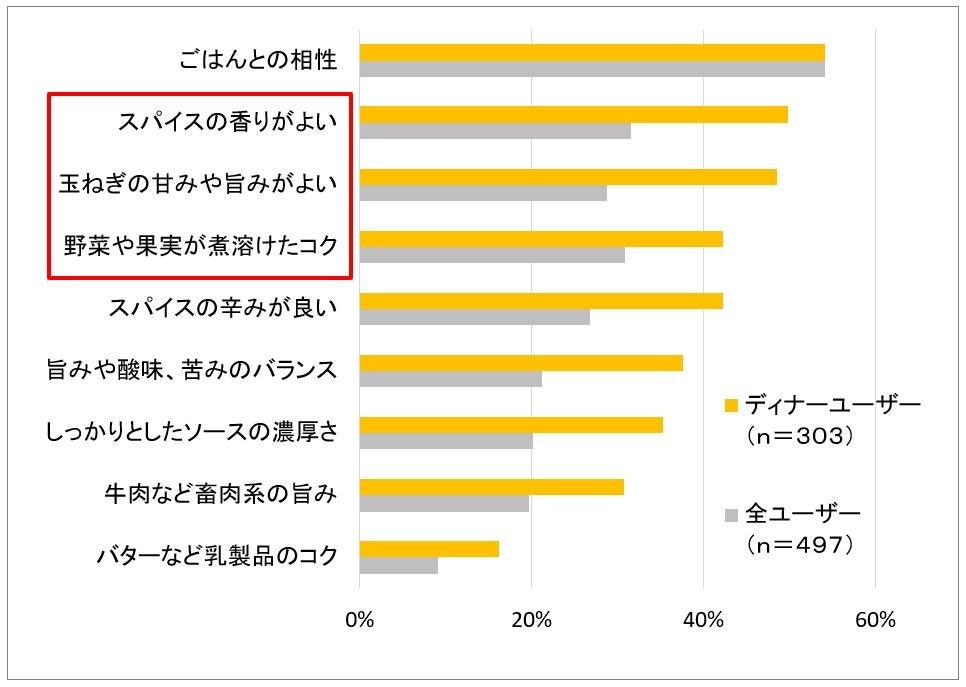 濃厚ながらもスパイスの香り高さや、野菜などのコクや旨みに対する意向が高まっています。