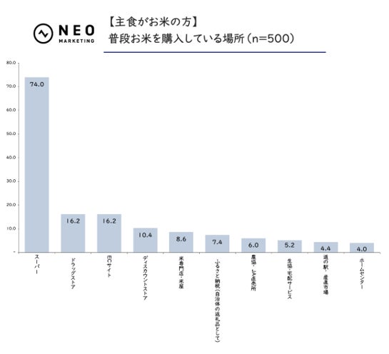 ほとんど差は生じず、「スーパー」がお米の購入場所として圧倒的な強さを誇ることが明らかに。