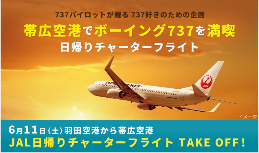 株式会社ジャルパック(本社:東京都品川区、代表取締役社長:平井 登、以下「ジャルパック」)は、6月11日(土)羽田空港を出発し北海道・帯広空港に着陸、現地イベントを通じてボーイング737パイロットとともに楽しむ、往路羽田発帯広着・復路帯広発羽田着の「帯広空港でボーイング737を満喫 日帰りチャーターフライト」を実施します。