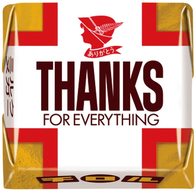 1962年に誕生した元祖チロルチョコ。ピーナッツ入りのミルクヌガーをミルクチョコで包んだ食べやすい一口サイズの袋商品です。120周年を記念し、中の個包装はすべて「THANKS」と書かれた期間限定デザインになっています。個包装の裏のワンポイントには100個に1個レアデザインが入っています。
