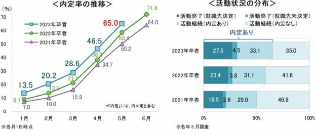 ○内定率は65.0%。前年同期実績(58.4%)を6.6ポイント上回りました