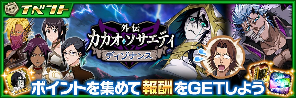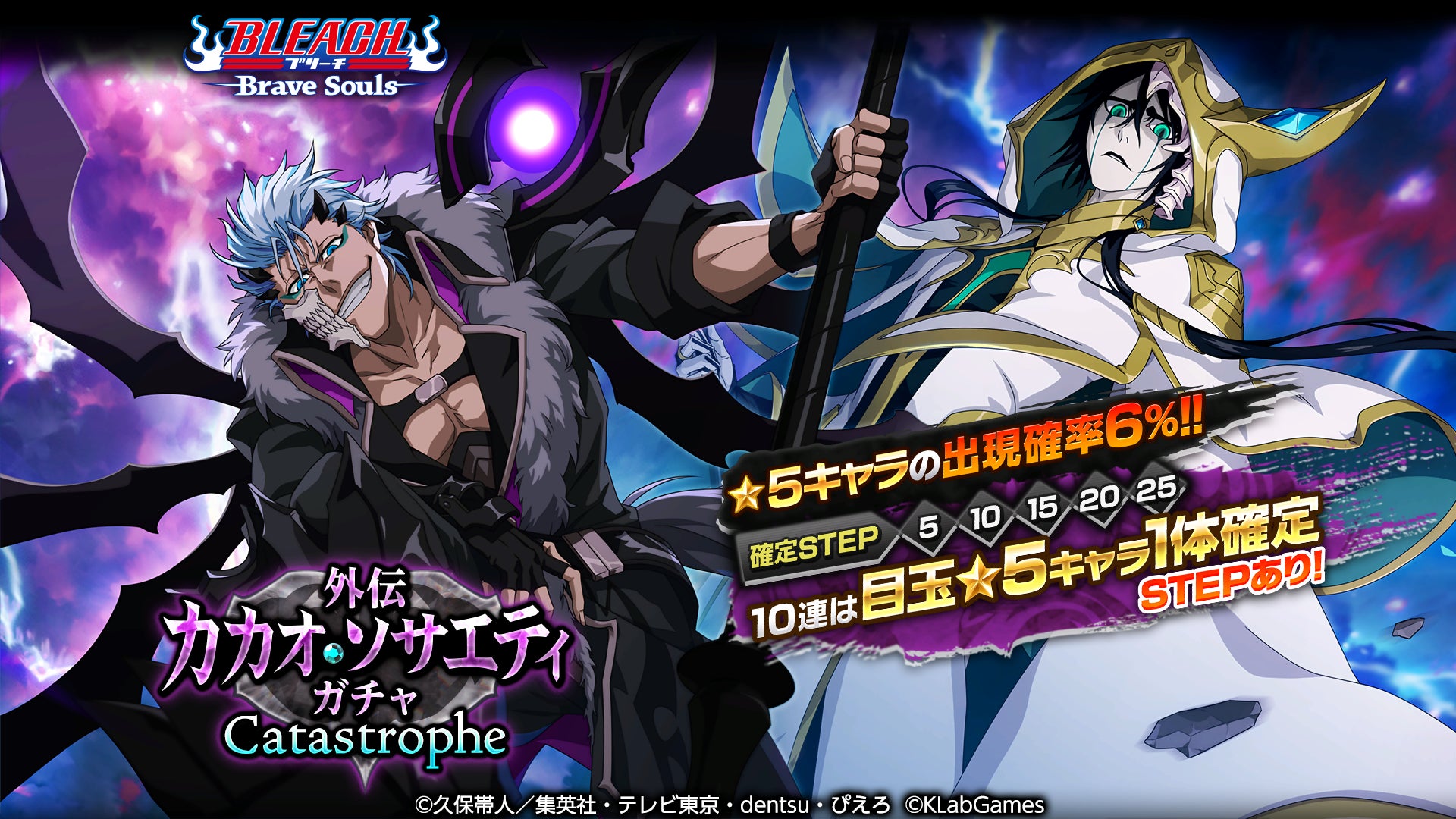 また、3月31日(木)16:00よりゲーム内限定イベント「外伝カカオ・ソサエティ ディゾナンス」、カカオ・ソサエティver.のグリムジョー、ウルキオラが新たに登場するガチャ「外伝カカオ・ソサエティガチャ―Catastrophe―」を開催いたします。