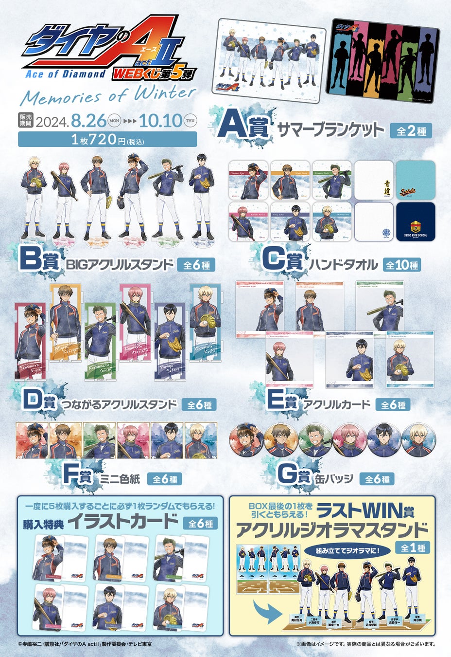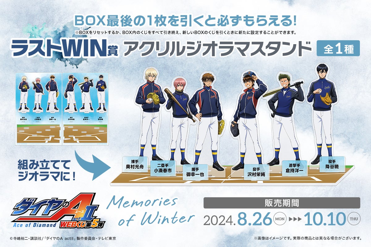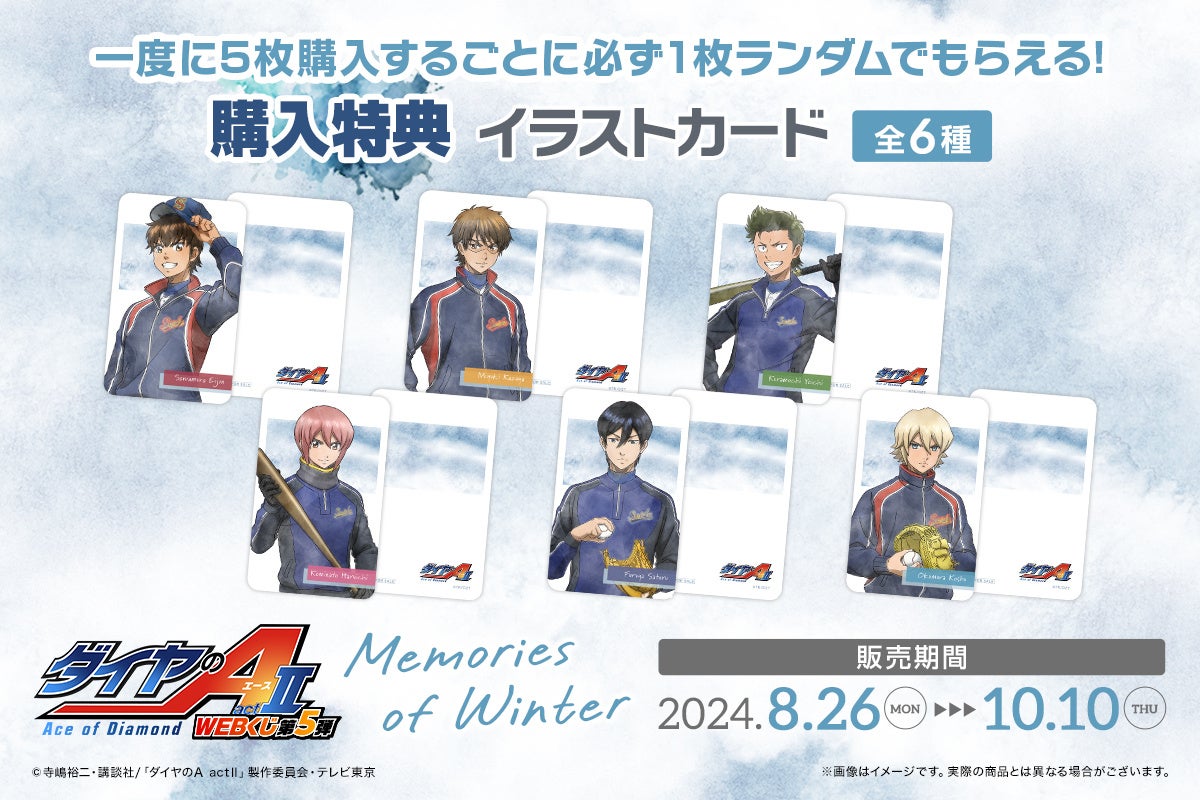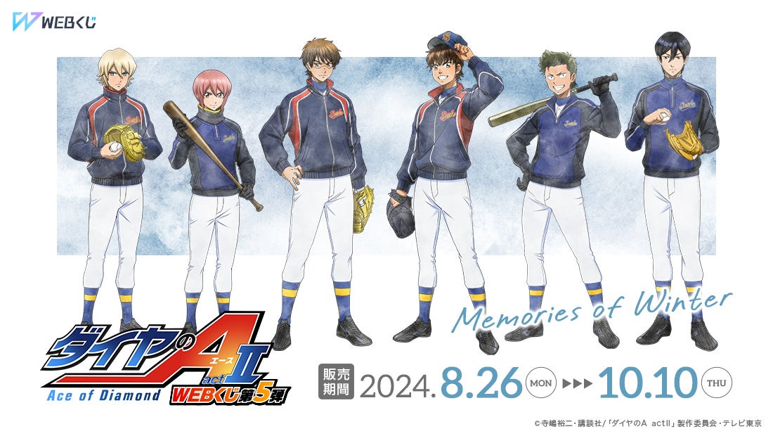 「ダイヤのA act II」WEBくじ第5弾~memories of winter~」は、TVアニメ「ダイヤのA act II」の描き下ろしイラストを使用した限定グッズが当たる、ハズレ無しのオンラインくじです。