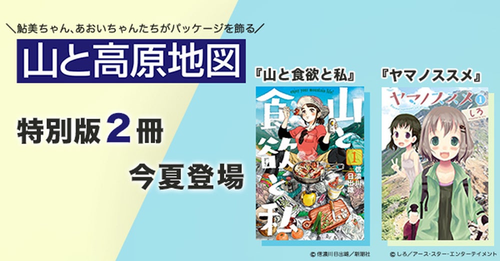 創刊以来初、人気登山マンガとのコラボが実現! 山と高原地図 特別版『山と食欲と私』『ヤマノススメ』Ver.が今夏登場