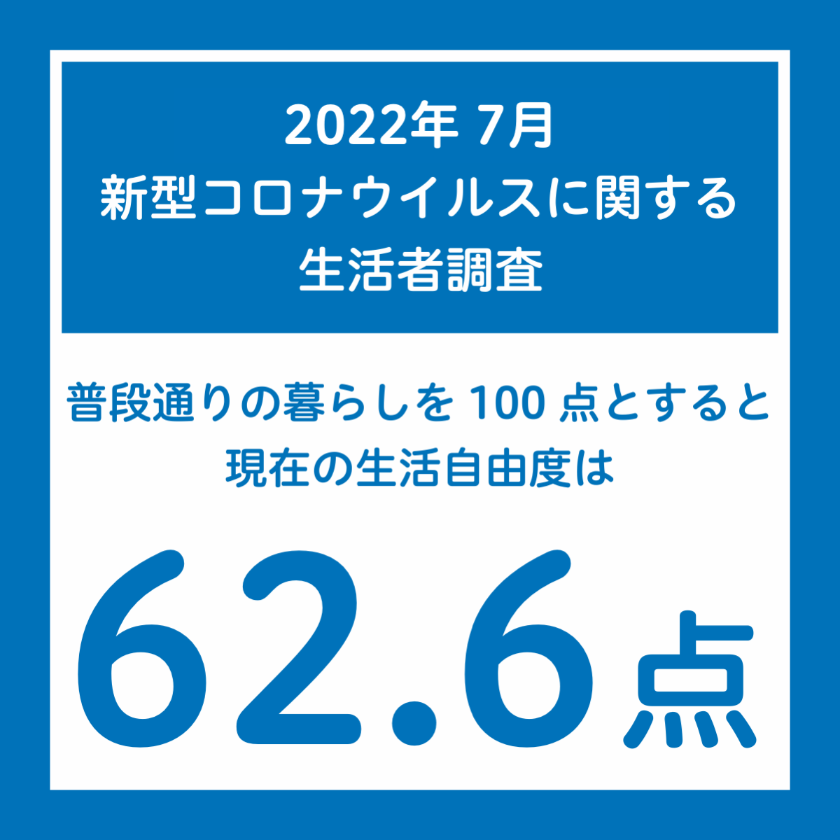 | 7月の「生活自由度」は62.6点で、60点台を3か月連続で維持。 「行動の抑制」が引き続き緩む |