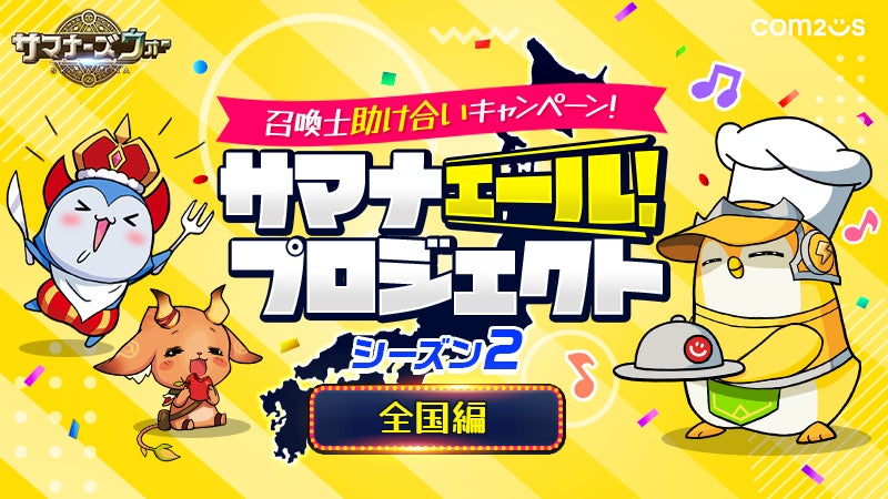 スマートフォン向けモバイルゲームをサービスしている株式会社Com2uS Japanは、iOS/Androidで大好評配信中の本格RPG『サマナーズウォー: Sky Arena』(以下、 サマナーズウォー)と召喚士のお店がコラボする「サマナエールプロジェクト」シーズン2第3弾として、全国編の開始をお知らせします。