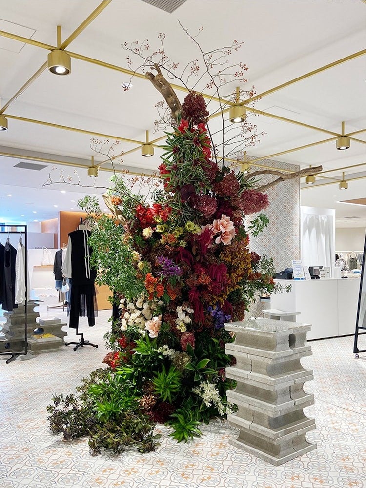 店内中央には、(e)vol Flowers(イーボルフラワー)の空間装花