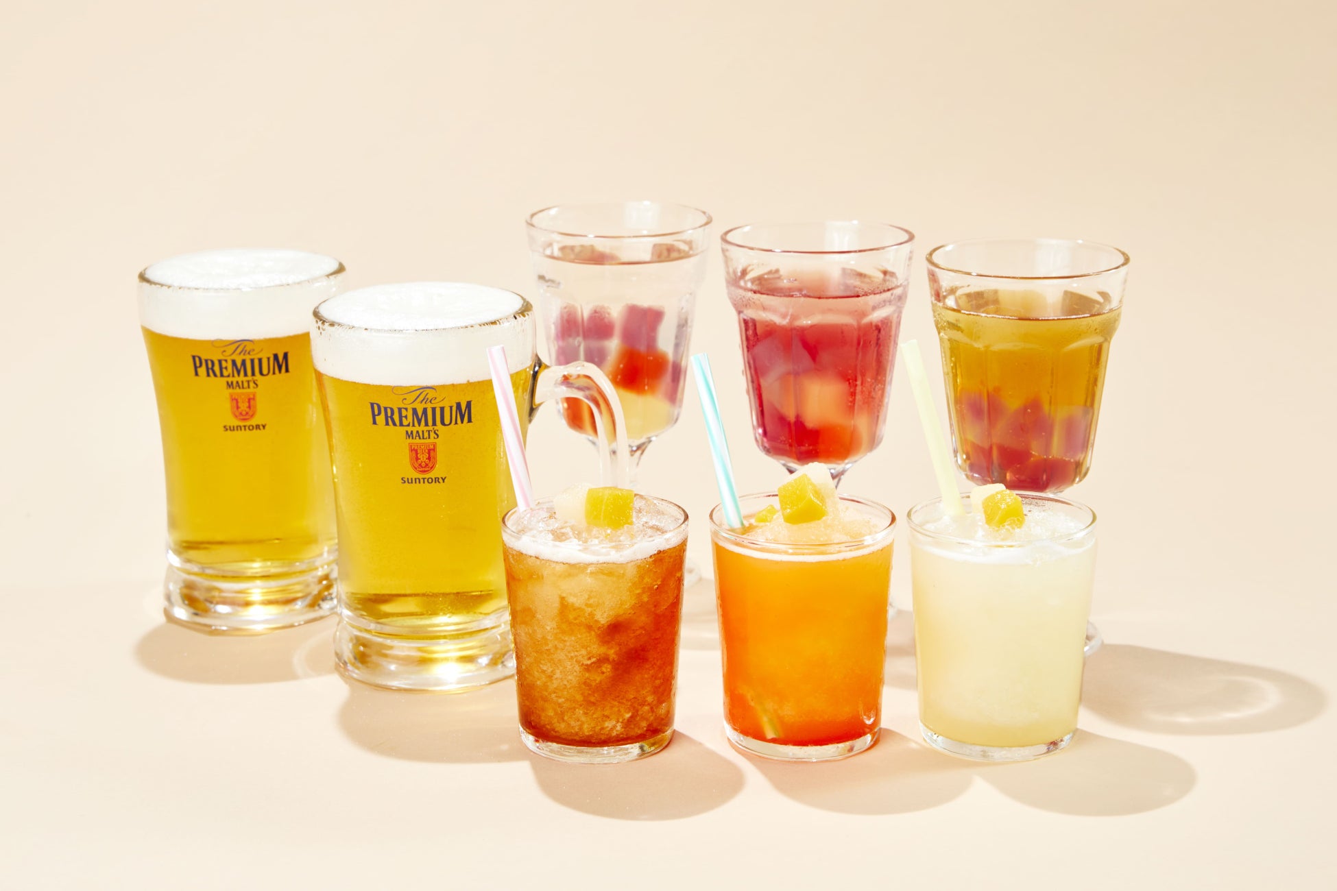 ザ・プレミアム・モルツ/ザ・プレミアム・モルツ〈香る〉エール/サントリー生ビール/ノンアルコールビール/ワイン/カクテル/超炭酸ハイボール/焼酎/サワー/梅酒/ほろよいのゼリーポンチ/九州果実のフローズンなど