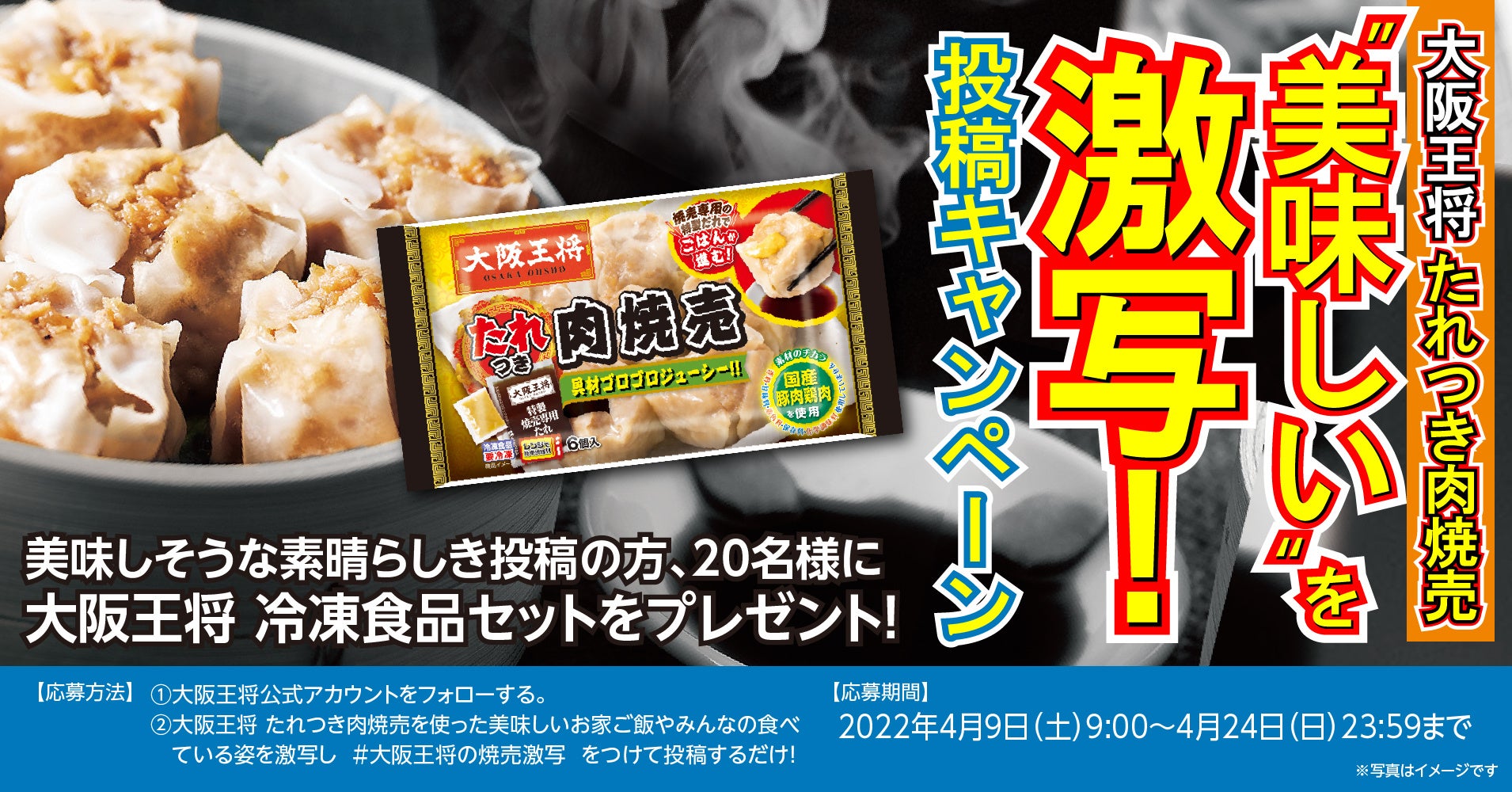 20名様に大阪王将 冷凍食品をプレゼント!Twitter、Instagram同時開催『大阪王将 たれつき肉焼売 ”美味しい”を激写!投稿キャンペーン』4月9日(土)より開催!