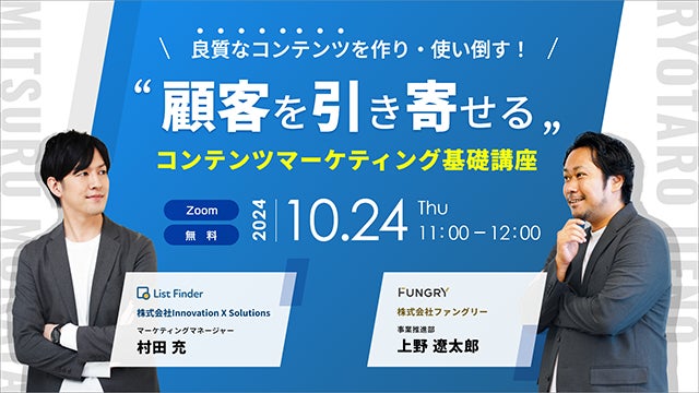 株式会社イノベーション(東証グロース 証券コード3970)のグループ会社である、株式会社Innovation X Solutions(本社:東京都渋谷区、代表取締役社長:歐陽 聖司、以下「Innovation X Solutions」)は、2024年10月24日(木)に、「良質なコンテンツを作り・使い倒す!”顧客を引き寄せる”コンテンツマーケティング基礎講座」をテーマにオンラインセミナーを開催いたします。