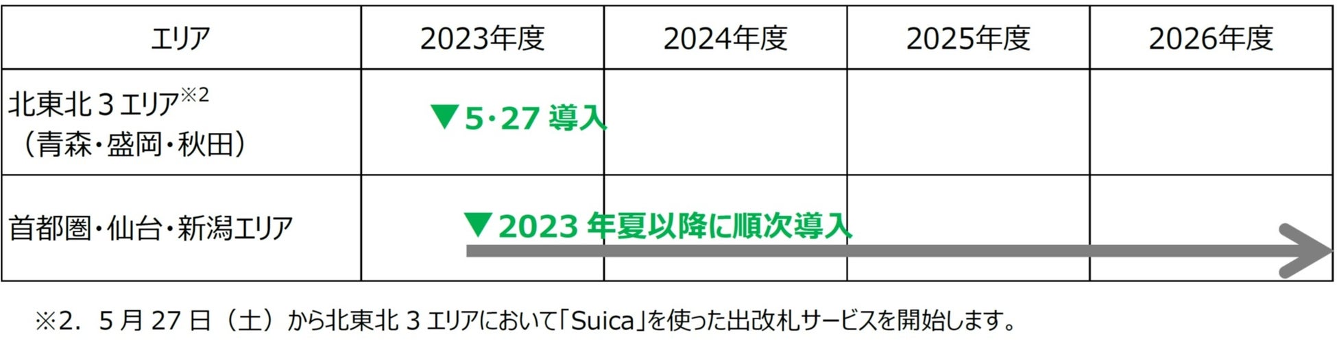 5月27日(土)から北東北3エリアの45駅に本システムを導入します。なお、首都圏・仙台・新潟エリアについては夏以降に順次導入を進めます。