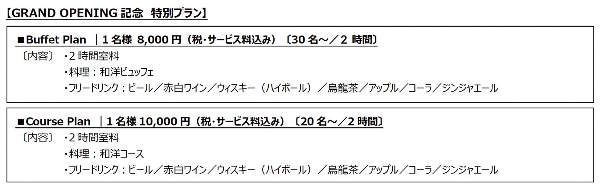 また、通常プランに加え、2026年6月末まで、GRAND OPENING記念の特別プランとして、旬の味覚を楽しむビュッフェと、シェフが手がけるこだわりのコース料理を期間限定の特別価格にてご提供いたします。