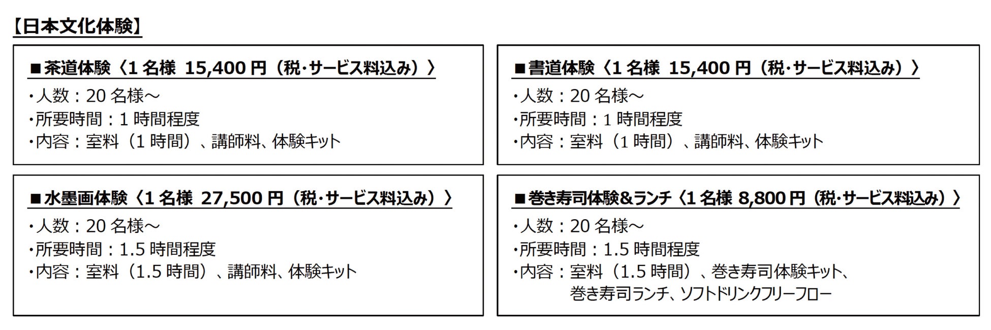 ※上記プランのほか、少人数2名様から100名様程度まで、幅広い人数での文化体験に対応いたします。お気軽にご相談ください。