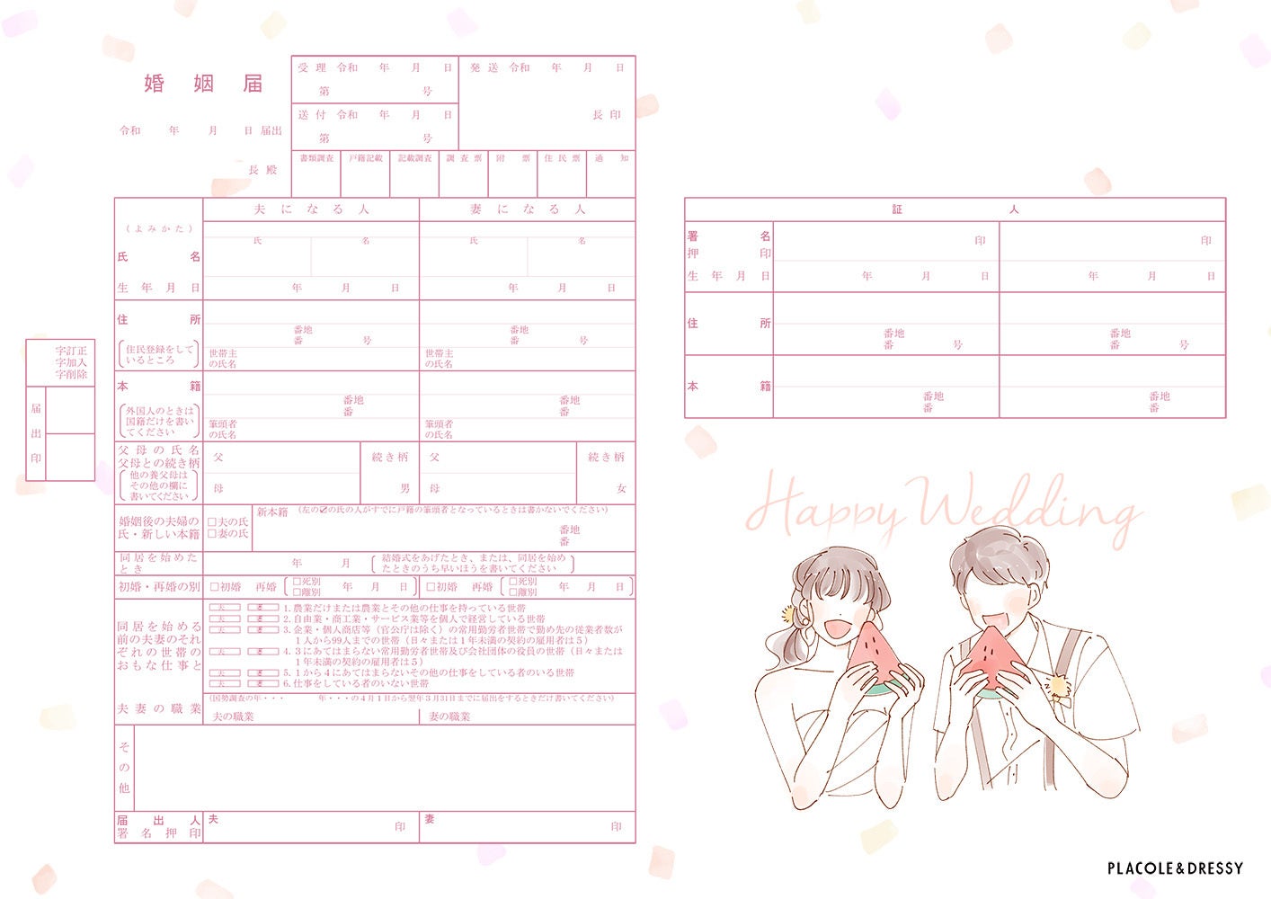 【9.3万ダウンロードを突破!】PLACOLE&DRESSYオリジナル 『プラコレ婚姻届』に新デザインの婚姻届に7月の新デザインが登場!ダウンロード無料!