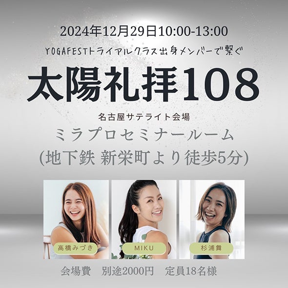 1年をしめくくる特別ヨガイベント『12種類の太陽礼拝108』を大豆プロテイン「SOY PROTEIN beauty ~ソイプロビューティ~」が協賛します