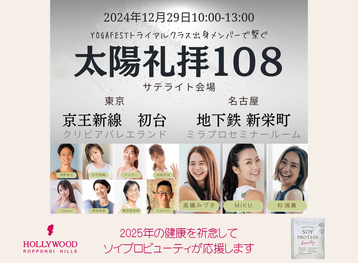 ハリウッド株式会社(本社:東京都港区六本木)が発売する『SOY PROTEIN beauty ~ソイプロビューティ~』は、太陽礼拝108へ協賛いたします。