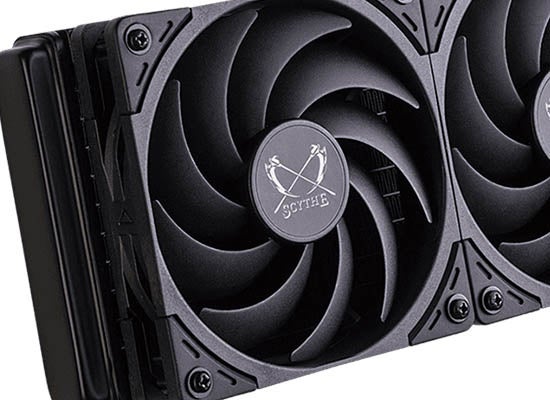 ラジエーターに気流を送り込む空冷ファンには、SCYTHE社製の完全密閉型流体軸受静音ファンを採用。