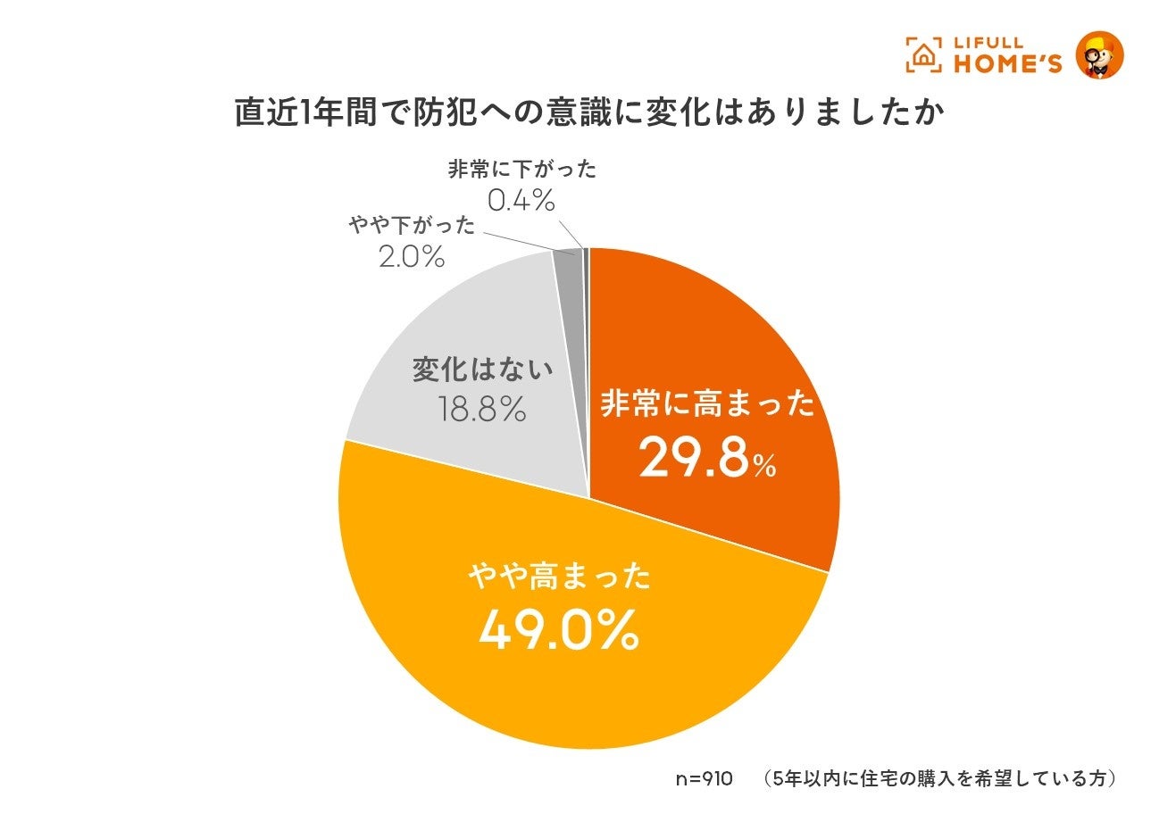 事業を通して社会課題解決に取り組む、株式会社LIFULL(ライフル)(本社:東京都千代田区、代表取締役社長:伊東祐司、東証プライム:2120、以下「LIFULL」)が運営する不動産・住宅情報サービス「LIFULL HOME'S(ライフルホームズ)」は、住宅の購入を検討している910名を対象に、住宅に関する防犯意識調査を実施しました。