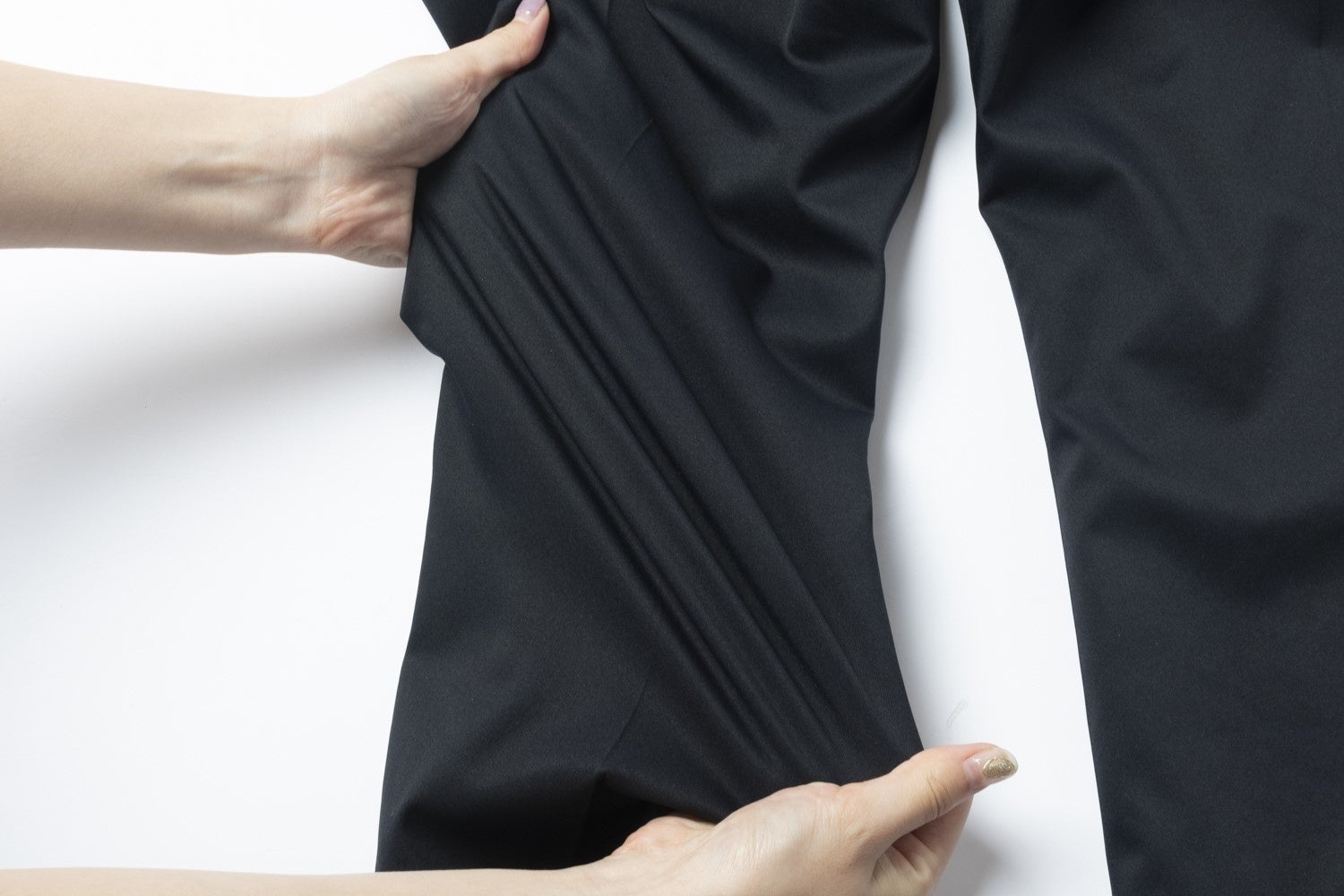 特徴:生地はストレッチ性、速乾・撥水、水洗い可、イージーケアなどの高機能性を備える自社オリジナル素材「ultimex」を使用。身体から発生する遠赤外線を吸収して蓄熱する特殊素材を裏地に使用し、保温性を高めました。袖口や裾などに放電テープを縫い込み、冬場の静電気を軽減。メンズのジャケットには、胸ポケットに出し入れ可能なフェイクチーフを搭載。メンズ・レディースともに、左内ポケットにはファスナーがついており、スマホや名刺入れなどが収納可能。メンズのパンツのウエストは背面ゴムに、レディースのパンツのウエスト両サイドにゴムを内蔵することで、締め付け感なく長時間着用可能。