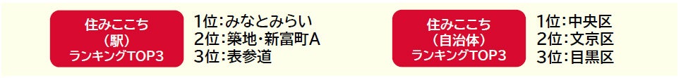 •「住みここち(駅)ランキング」は、駅徒歩15分以内に居住している回答者が30名以上の駅を、「住みここち(自治体)ランキング」は回答者50名以上の自治体を対象として集計しています。