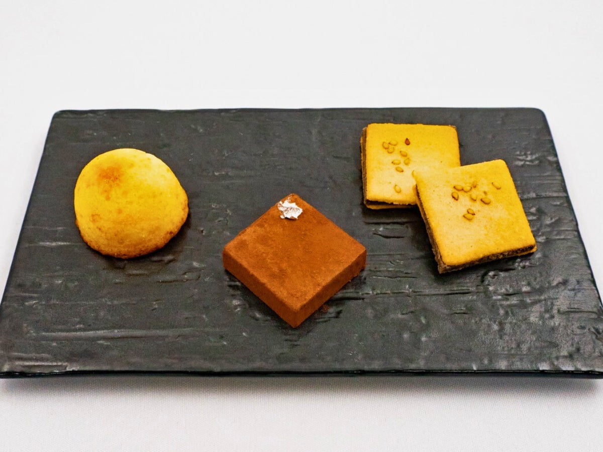 グラニテの清涼感と、グラスパフェは仕上げの瞬間に温かいホットチョコレートを注ぐ演出を。冷と温、静と動——対照の美しさが際立つ、コースの中盤にふさわしい、香りと温度の余韻が広がります。