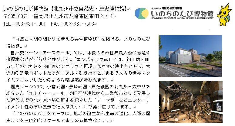 館”「いのちのたび博 物館」(北九州市八幡東区)の体験プログラムをはじめ様々な“体験”を用意して