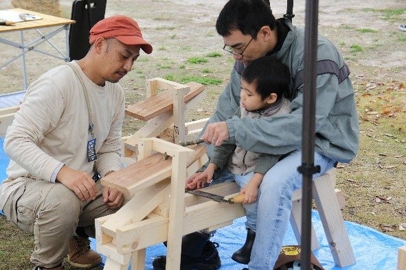 油山で行っている人気ワークショップ、グリーンウッド ワークで恐竜の牙をつくります。 木の枝を一