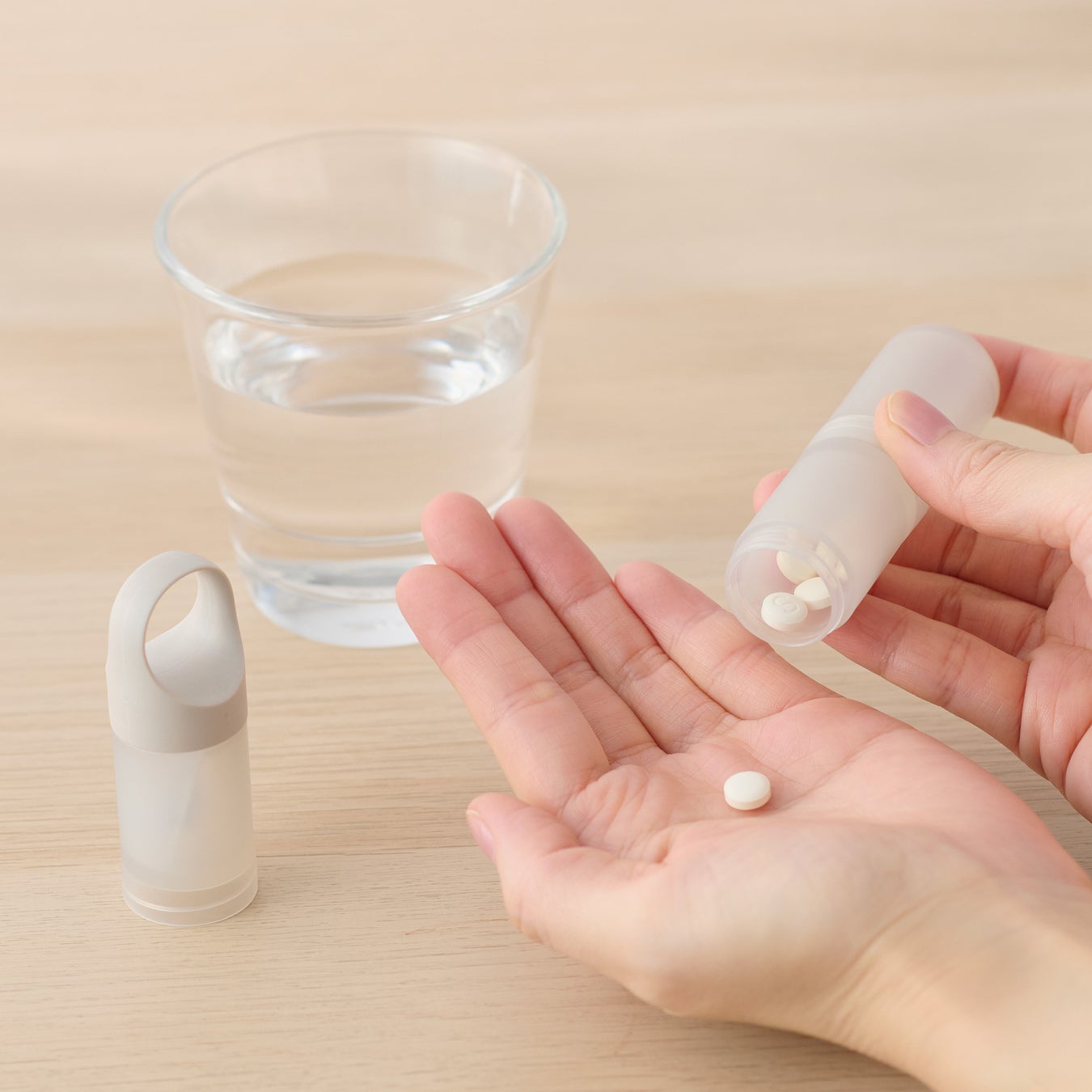 常備薬やサプリメントの持ち歩きに便利なスティックタイプのピルケースです。ポーチやカバンのポケットにも入れやすいサイズで、旅行時などにも便利。3つの容器がつながっているので、必要に応じて段数を減らして持ち歩くこともできます。細長い容器を傾け中身を出せるので、お薬やサプリメントに直接触れることなく衛生的に使えます。持ち出し用の防災リュックなどに常備薬を入れておけば災害時にも安心。スペースを取らないので気軽にお使いいただけます。