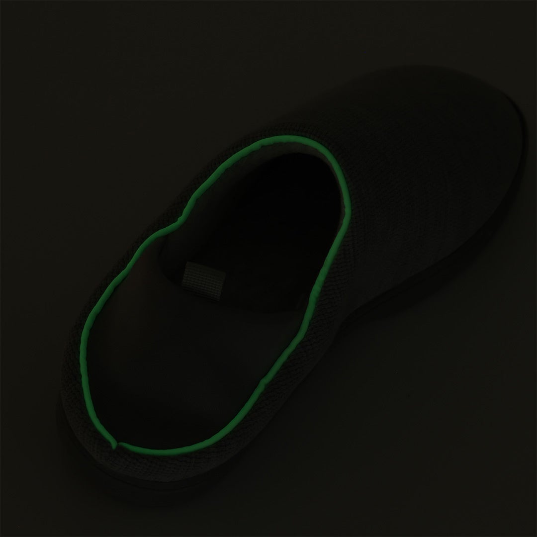 KEYUCAではこの度、底に釘やガラスを通さない丈夫なシートを入れた「防災スリッパ」を発売します。フチは光を蓄える仕様のため暗いところで見つけやすいのも特長。シンプルなデザインなので普段使いにも適しています。