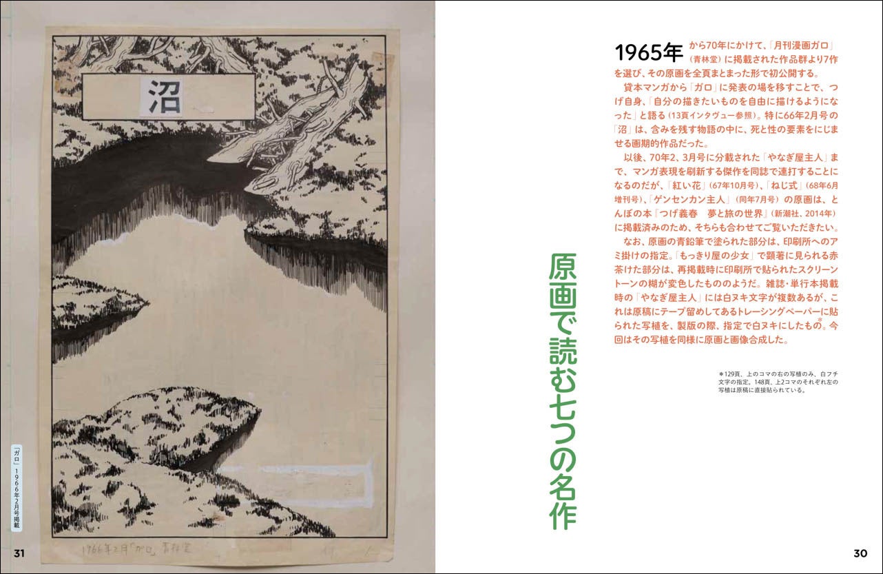さらに、本書のもう一つの目玉は、名作を原画の形で読めることです。アングレームでも、つげさんの原画展が開催され、老若男女でにぎわいました。本書では、1966~70年に「ガロ」に発表された作品群のうち、「李さん一家」「海辺の叙景」「もっきり屋の少女」など7作の原画を、初めて全頁掲載します。