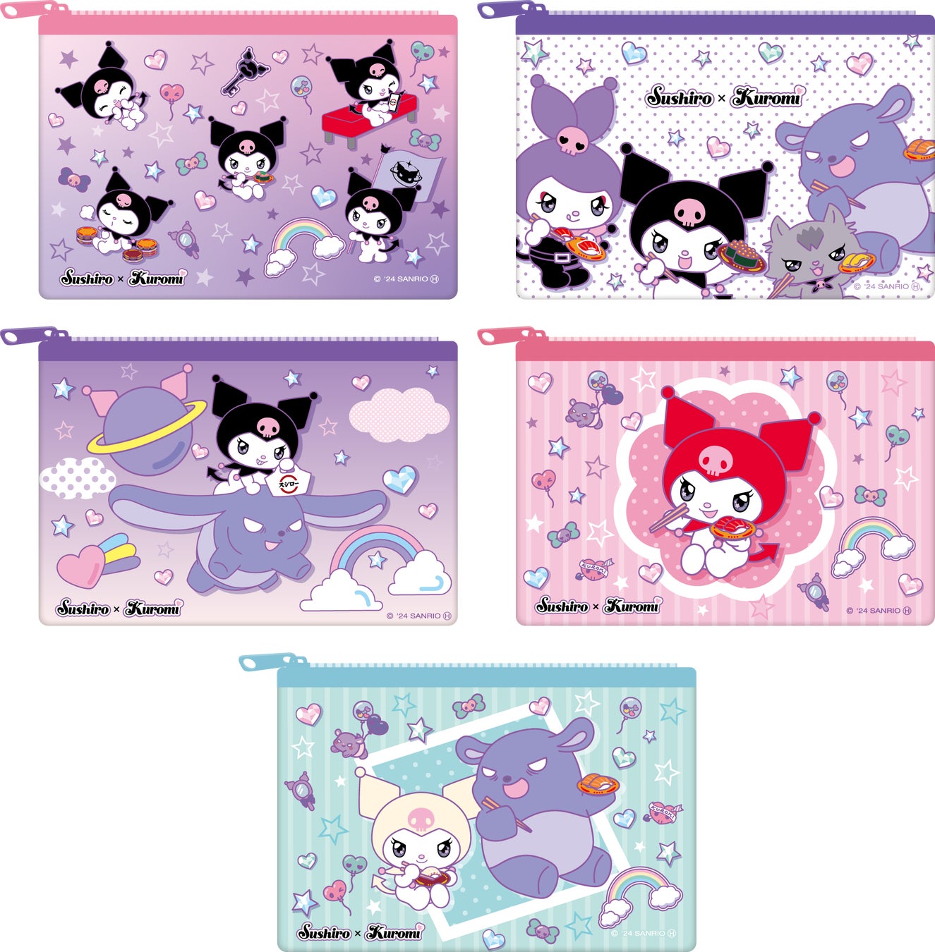 そして、今回のコラボを記念して、なんとスシローオリジナルデザインのクロミが登場いたします。「シロミ」を食べて白ずきんをかぶってしまったクロミ、「アカミ」を食べて赤ずきんをかぶってしまったクロミです。このオリジナルデザインのクロミは、コラボ限定ピックやシール、ドリンクに付属するマスコットやぷちローセットに付属するポーチ等にランダムで出現します。他にはないアイテムですので要チェックです。