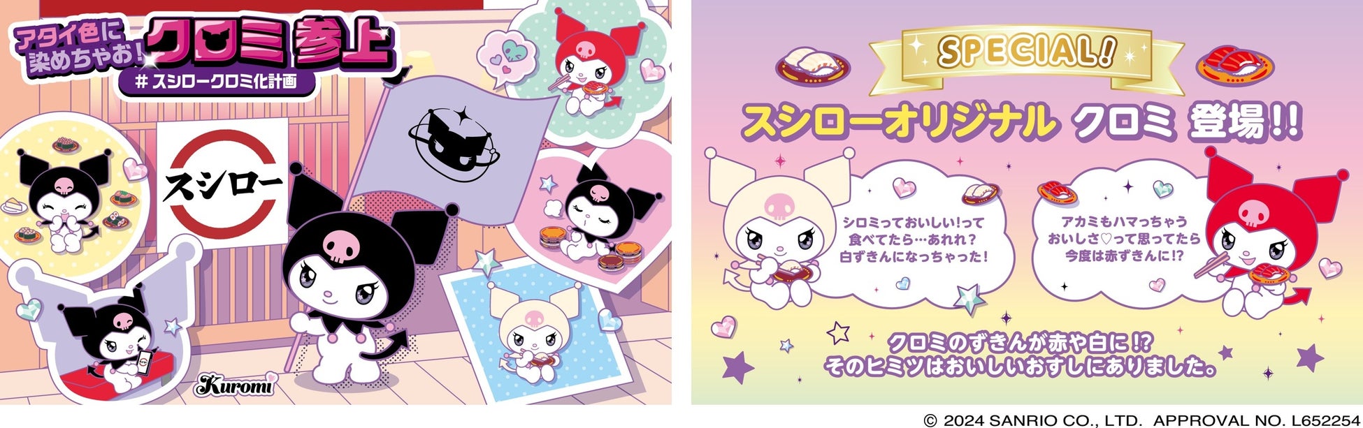 この度、おすしをお楽しみいただくことはもちろん、おすしと一緒に楽しめるコンテンツを提供したいという想いから、「2024年サンリオキャラクター大賞」TOP3にもランクインしたサンリオの人気キャラクター「クロミ」とのコラボを実施いたします。