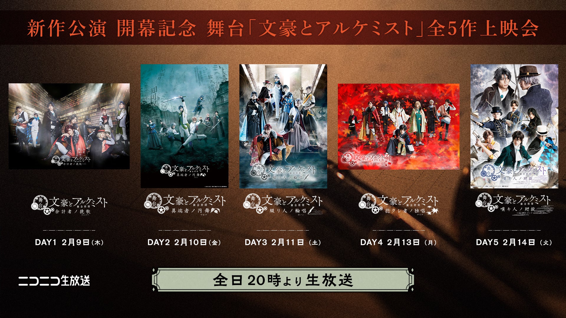 舞台「文豪とアルケミスト 戯作者ノ奏鳴曲(ソナタ)」の開幕を記念して、2月9日(木)から過去全5作をニコニコ生放送にて一挙上映