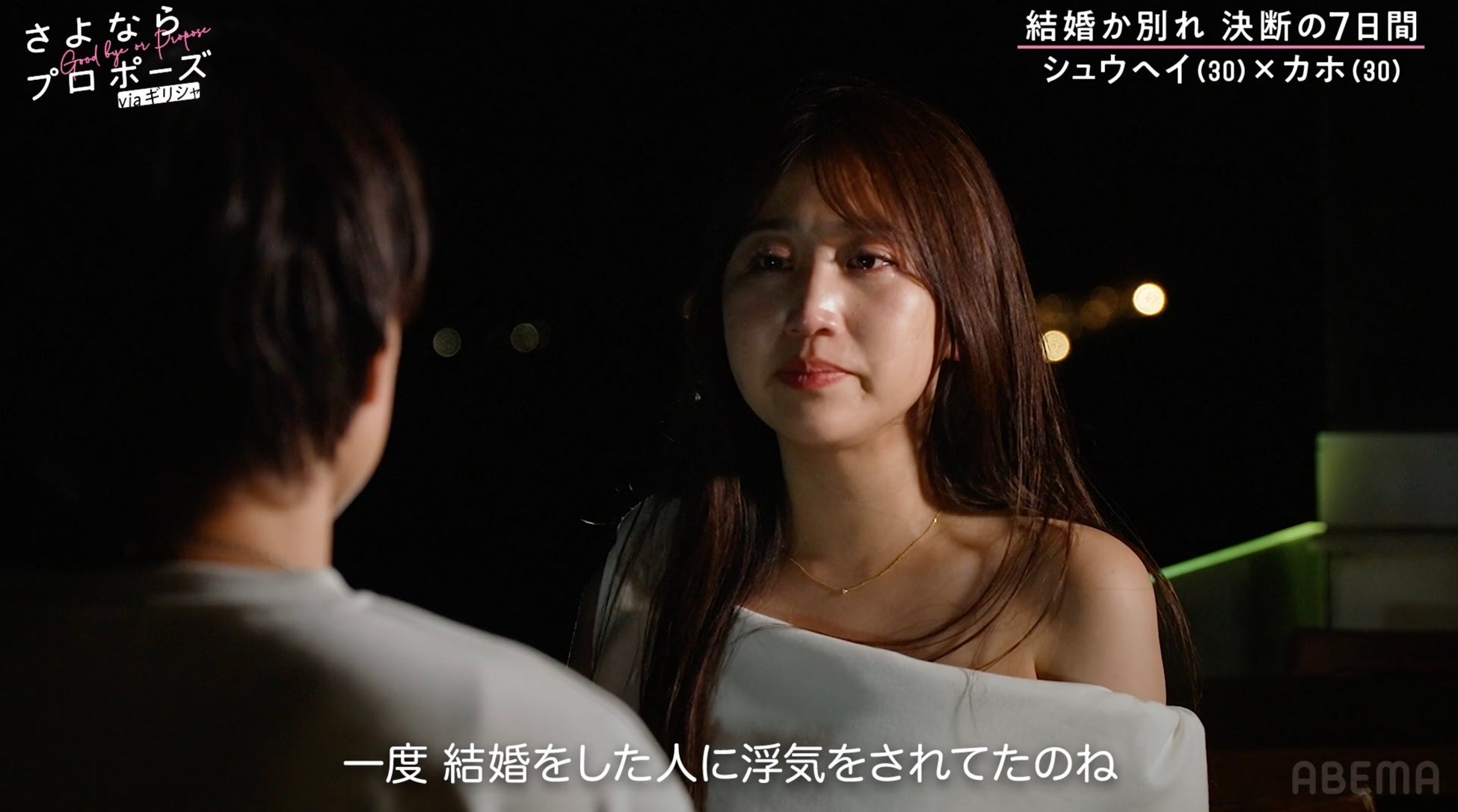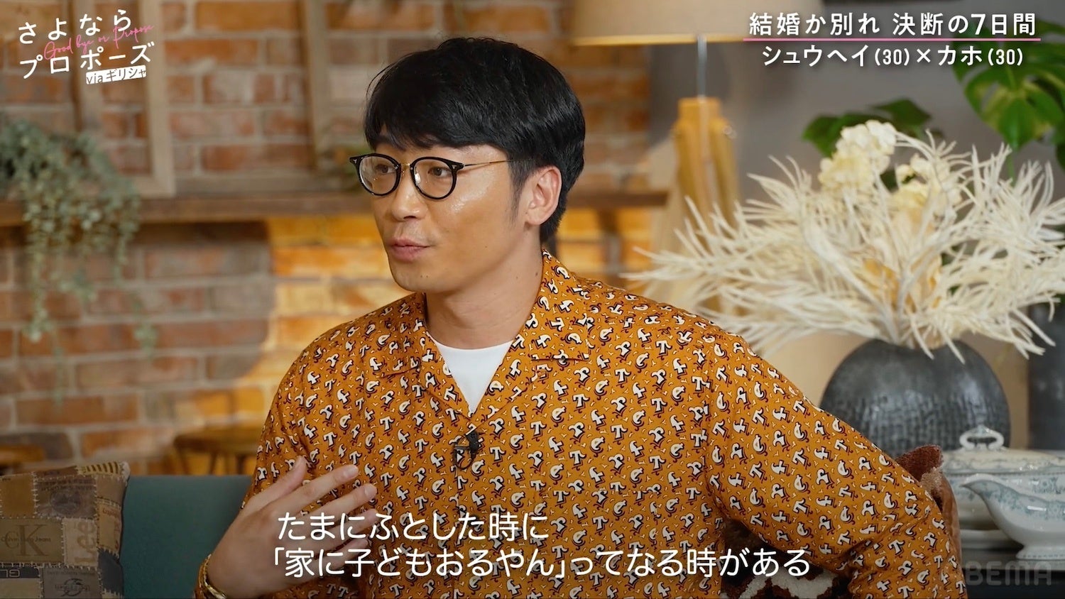 この言葉を受けてシュウヘイは「結婚して価値観が違ったから別れるって俺の中では絶対になくて」「重さでいうとカホちゃんと同じなのかなって、それが俺の覚悟なのかなって思った」と語ります。