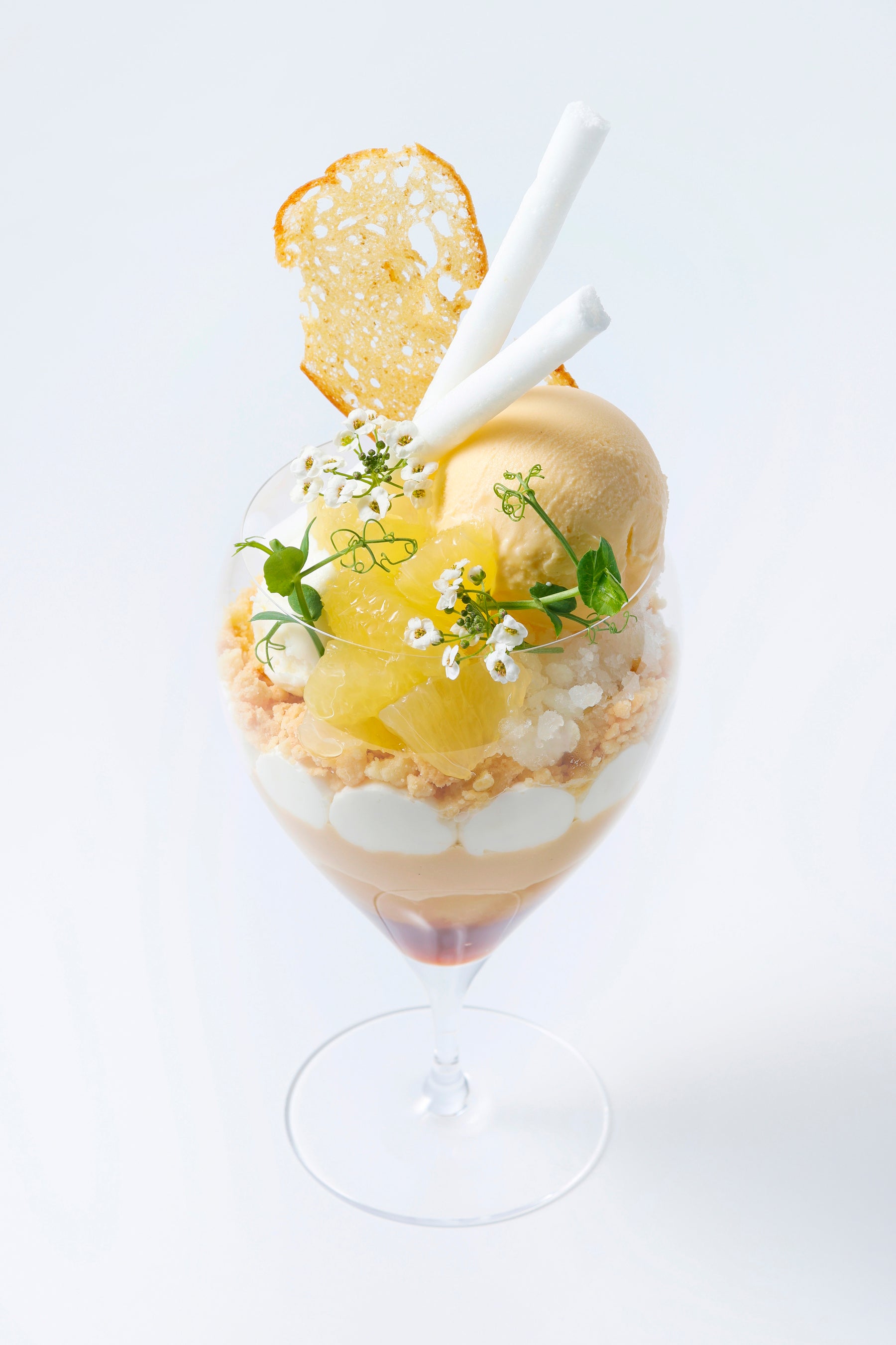 【アルマーニ / カフェ 表参道】3月は、初春の香り広がる爽やかな逸品 日向夏 生姜 アールグレイのパフェ