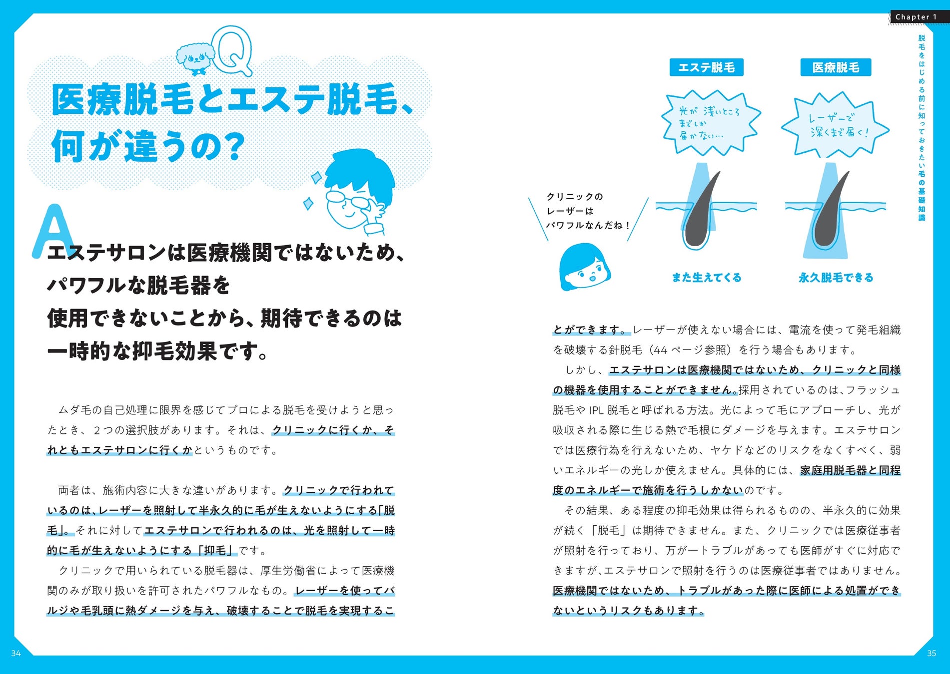 そこで本書では、ムダ毛に悩む女子の素朴な疑問や不安を解消し、トラブルを回避するために必要な予防策をQ&A形式でわかりやすく解説します。
