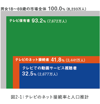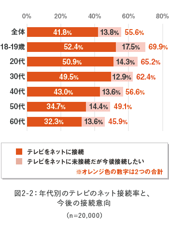 1. テレビのネット接続率は41.8%。未接続層でも、若年層を中心に全世代で高い接続意向