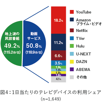 民放番組49.2%、動画サービス50.8%で動画サービスがわずかに上回る