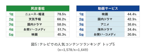 民放番組では「速報」系、動画サービスでは「娯楽」系のコンテンツが人気