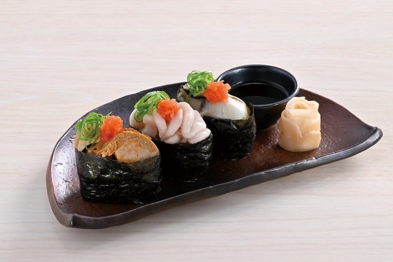 「濃旨あん肝」「真鱈白子」「瀬戸内産牡蠣」の軍艦三種は、冬の寒いこの時期だからこそ味わえる贅沢な一品です。