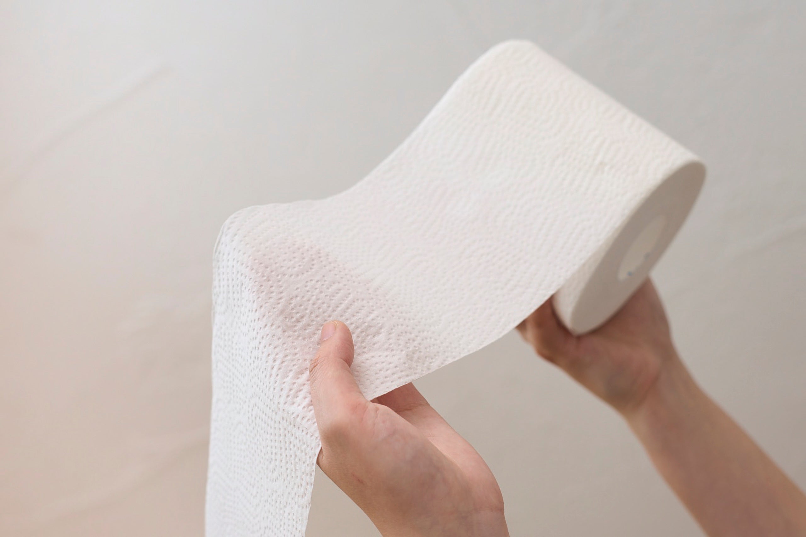 『Theエリエール トイレットティシュー 12ロール(ダブル)』は、45年間で培った開発技術を結集し、柔らかいのに破れにくい“未体験”の品質を追求。自然由来の柔軟剤を従来の2倍量※2配合することでふんわり感が1.4倍※3にアップし、これまでにない柔らかな肌触りに仕上げました。また、独自の「ネステッドエンボス加工」とラミネート加工を組み合わせることにより、従来の商品と比較して約2倍の吸水力※3と、シャワートイレ専用のトイレットペーパーと同等レベルの破れにくさも実現。トイレットペーパーの芯からは心やすらぐフローラルソープの香りが広がり、トイレ空間をやさしく彩ります。