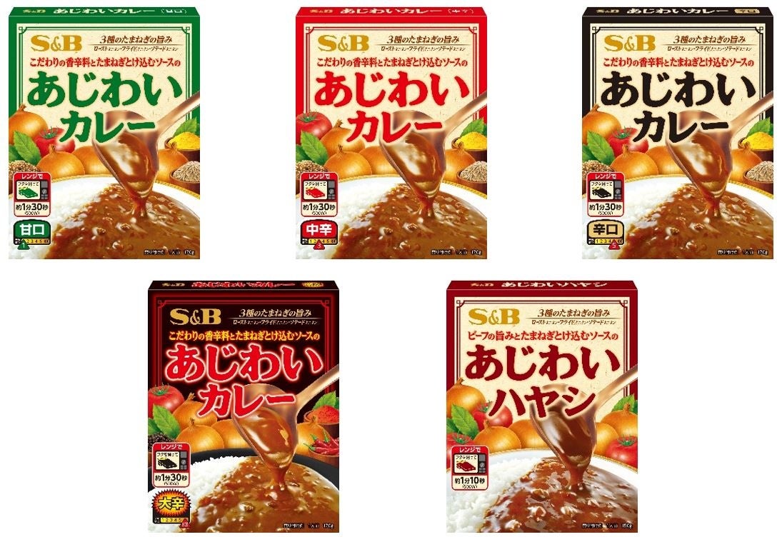 エスビー食品株式会社は、3種類のたまねぎを中心とした味わい深いソースが特徴の「あじわいカレー(甘口・中辛・辛口・大辛)」、「あじわいハヤシ」を新発売します。