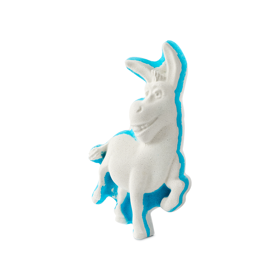 『シュレック』の相棒でおしゃべりなロバの『ドンキー』をモチーフにしたバスボム(入浴料)です。勇敢な騎士には忠実な相棒が必要。クローブとイランイランのスパイシーでありながら甘いキャラメルのような香りを放つ『ドンキー』と、バスタイムパーティーを開催しましょう。