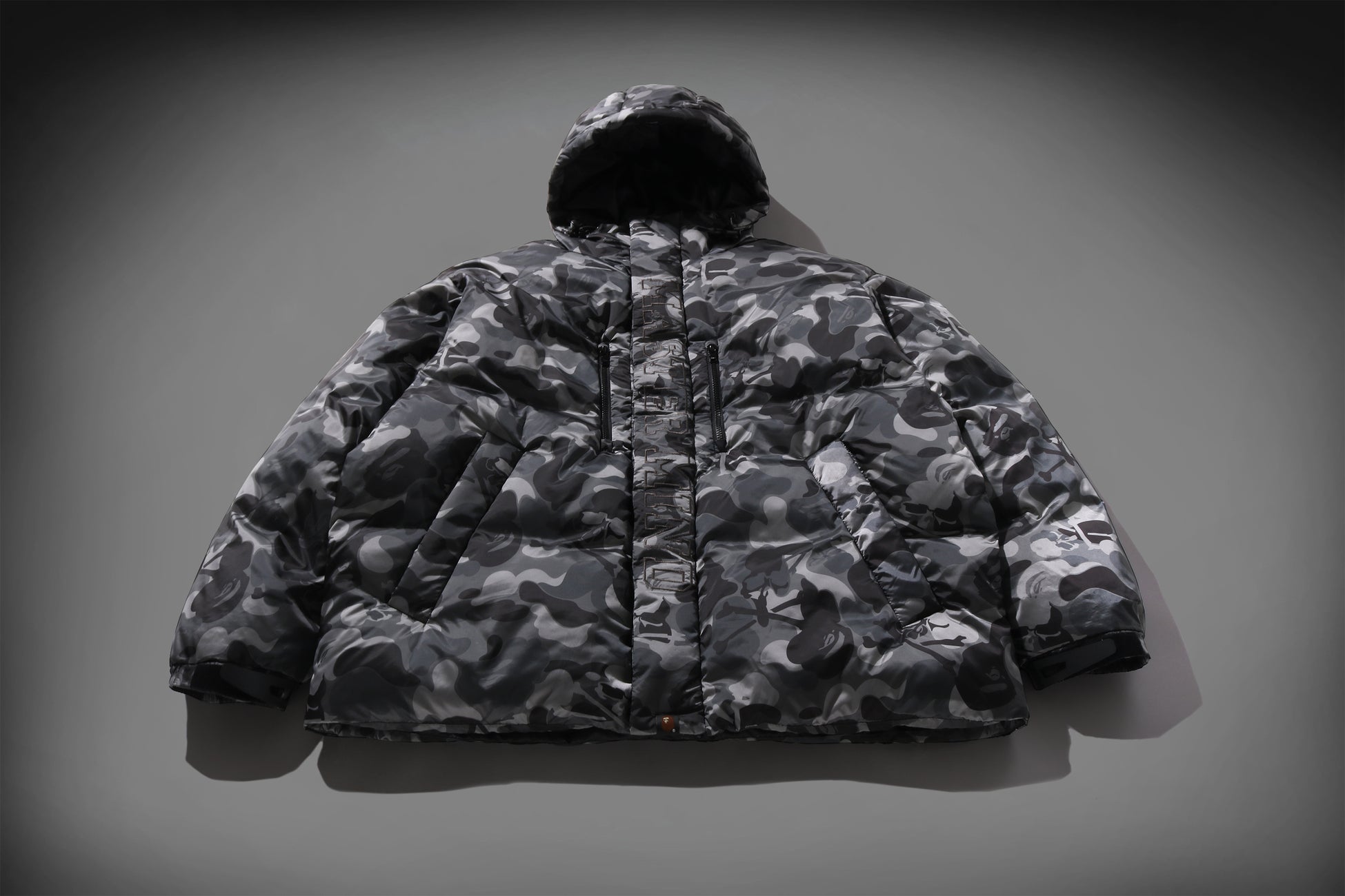 ダウンジャケットは、モノトーンの“ABC CAMO”に「mastermind」のアイコンであるクロスボーンスカルを落とし込んだCAMO柄“SKULL CAMO”を施しています。前立てに“MASTER MIND”のタイポグラフィを刺繍し、BAPE®︎のベストセラーであるスノーボードジャケットを彷彿とさせるディテール。
